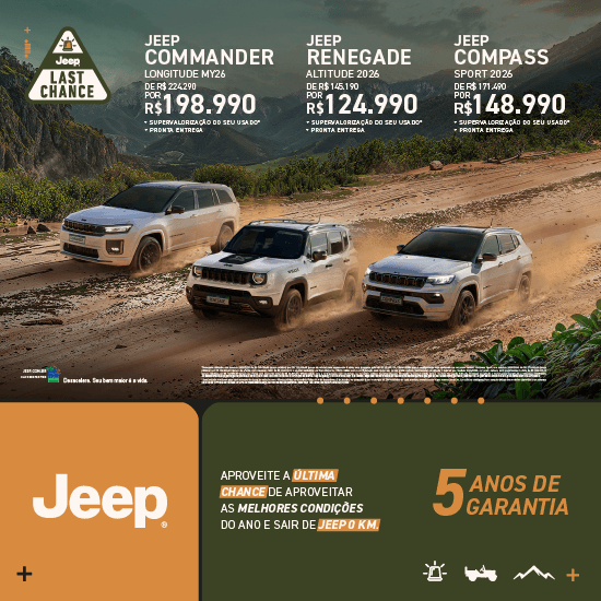 No Consórcio Brilhauto Jeep você encontra as melhores ofertas e facilidades para ficar cada vez mais perto do seu Jeep.
